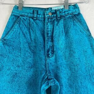90s Vintage Sundance Turquoise Acid Wash Heavy Denim Mom Jeans Size 5/6 USA