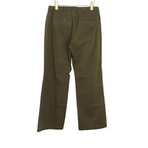 1990s Vintage High Rise Straight Leg Pants. Cross Between a Retro Straight Jean and Khaki Trouser. Color is a Darkest Green Almost Brown. Classic 90s Fit High Rise Straight Leg Casual Pants. Super Cute