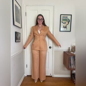 90s Vintage Thierry Mugler Peach Wool Blend Suit