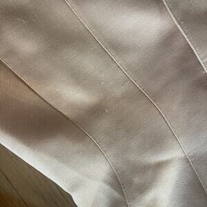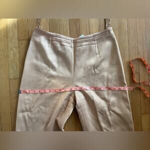 It’s all about the small details on this 1990s vintage Thierry Mugler suit. Made of a wool blend, this is a two piece pant suit in a peach color. The pants are high waisted and wide legged. The jacket is long sleeved, with concealed zippers up each forearm. It has a notched lapel and snaps shut down the front. It has the peplum style shape that Mugler is famous for - fitted at the waist and then a slightly rounded peplum fit for the bottom part of the jacket. Both the top and bottom are marked an Italian 44 - see measurements in photos for best fit as vintage sizing can be off. Approx a large. Overall in good vintage condition - a few small snags throughout and a spot on one shoulder - see pics. Power dressing, power suit vibes!