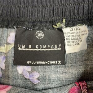 U M & Company by ulterior motives floral maxi with a button front and elastic back. The buttons can be worn in the front center or over the leg for a sexy peekaboo
