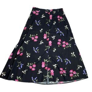 90s Vintage U M & Company Button front Floral Maxi Skirt Black 29”