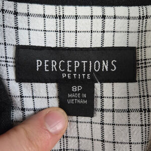 90s Vintage White Black Graph Check Short Sleeve Button Down Blazer Size 8P