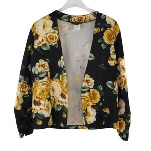 90s Vintage Yellow Floral Blazer by Silhouette NYC Open Front Jacket Medium