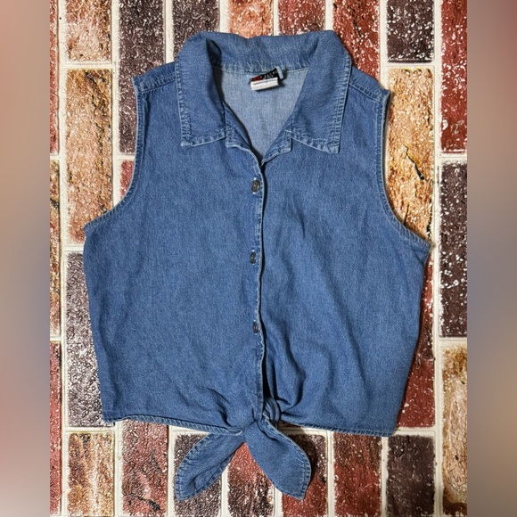 90s Vintage blue denim chambray tie front crop top shirt Size 4 women’s Small