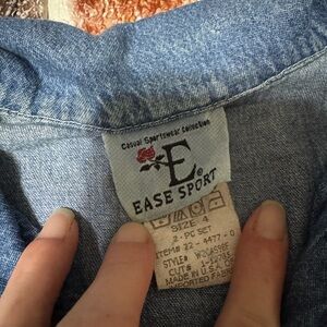 90s Y2K Ease Sports denim (chambray) tie front crop top shirt