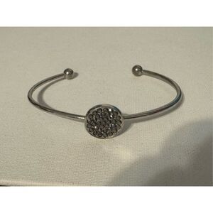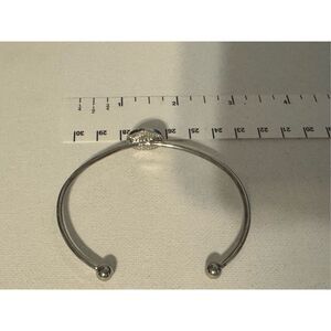 90's Vintage Womens Floral Silver Tone Bangle Bracelet Dainty Minimalist Western