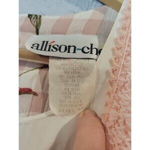90s Vtg Allison Che Women's Size 6P Midi Dress Pink Floral Crochet Boho Check