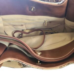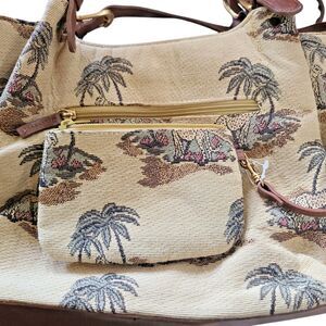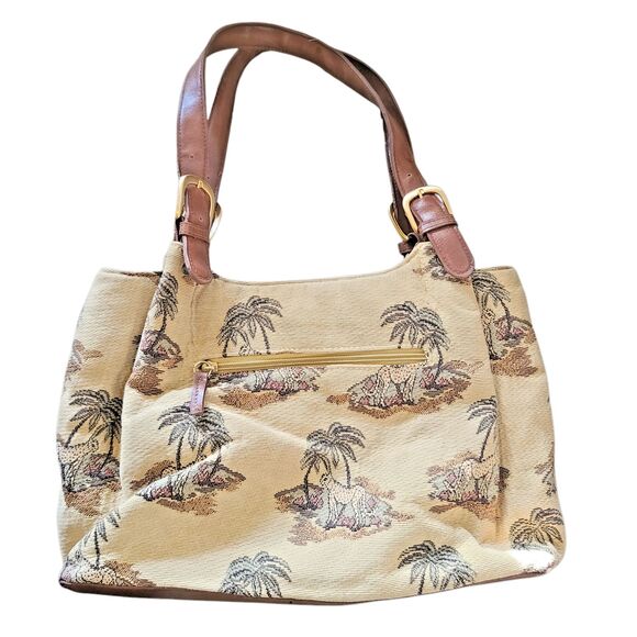 90s Vtg Bueno Large Tan Tapestry Cheetah Tree Animal Shoulder Bag w/ Coin Purse