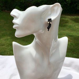 Selling my super cute tuxedo black and white (B&W) cat 3D drop earrings. These sweet vintage enamel earrings are in good used condition with normal signs of wear (please see pics for detail). Personally purchased new around 1994/1995, they have been kept in a dust bag unused for over 25yrs. In addition, they have a little bit of weight to them (but not enough to hurt or stretch your ears) so they won't break anytime soon (probably ever).