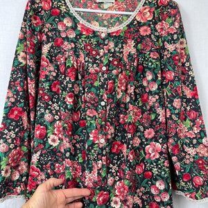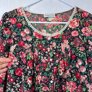 90s Willow Creek Long Sleeve Maxi Dress Nightie Womens M Floral Cottage Modest