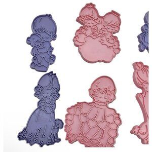 Features set of 8 Precious Moments cookie cutters by Wilton Enterprises, used a couple of times, but have been kept in the box, dishwasher safe plastic and easy to use, copyright date of 1993 they offer delightful designs for fun treats, made in China