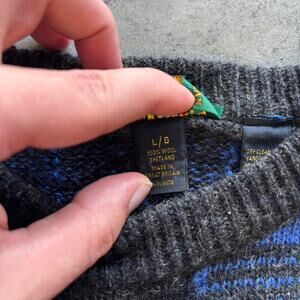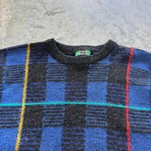 wool knit, plaid pattern, vintage sweater, 90s style, casual wear, cozy sweater, distressed knit, fall fashion, loose fit, warm sweater