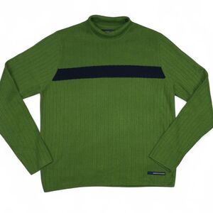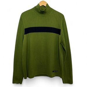 90’s Y2K Abercrombie & Fitch ribbed Moss Green and Navy Striped Sweater witih a sophisticated mock neck. Technically a mens sweater, however, I feel it could be unisex. Great quality (55% acrylic 45% Cotton blend) and absolutely excellent condition. Size M.