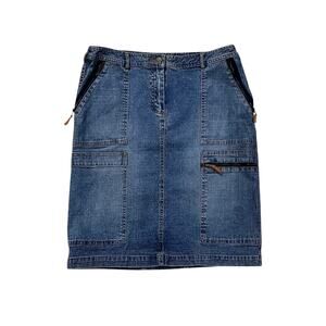 90s Y2K BCBGMaxAzaria Jeans Denim Cargo Skirt Sz 12 Knee Length