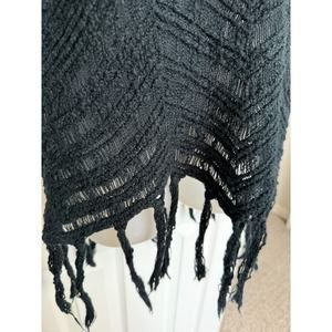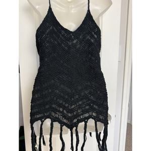 90s Y2K Black Crochet Knit Fringe Tank Top Boho Festival Western Hippie Size Large