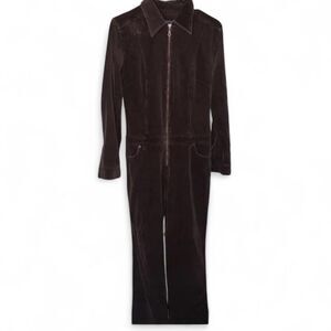 90's Y2K Chocolate Brown Corduroy Long Sleeve Zippered Jumpsuit. M.