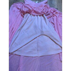 90s Y2K City Triangles Pink Floral Pattern Cottagecore Midi Dress With Ruffled Hem S