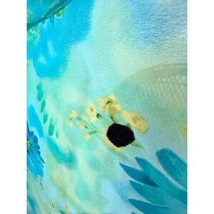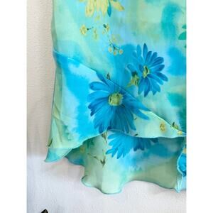 Adorable blue, green, and yellow bias cut midi dress with tie back and flutter hem. Slightly longer hem in the back and the cutest print!!