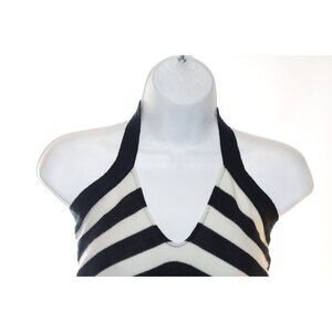 90s Y2K Dress Womens Size Small S West Seal Body Con Hugging Sweater Striped Halter Black & White