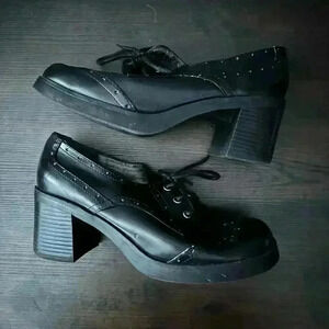90s Y2K MUDD Black Chunky Grunge Goth Skater Platform Heels Size 8.5M Dennis