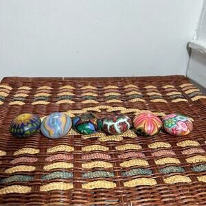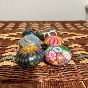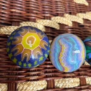 Adorable little 90’s style circle candals. 2 burnt a little, other not lit. One unlits wick is a little smashed down. Adorable as shelf decor or to use!