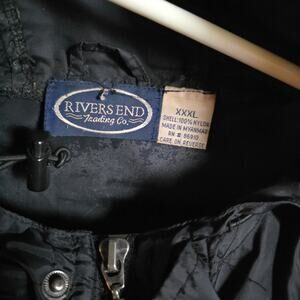 This jacket is a vintage piece from the 90s, specifically a Y2K-era windbreaker jacket from Motor City Casino. It features an embroidered design with the Rivers End logo and is made of polyester fabric. The jacket is in great condition and is perfect for travel, casual wear, or workwear. It has a solid pattern in blue color and a zip closure. The size is L and the jacket is a regular fit. It's suitable for all seasons, including winter, summer, fall, and spring, and is perfect for hiking and other outdoor activities.