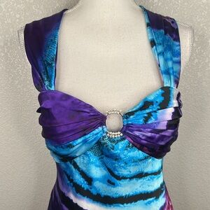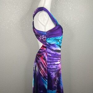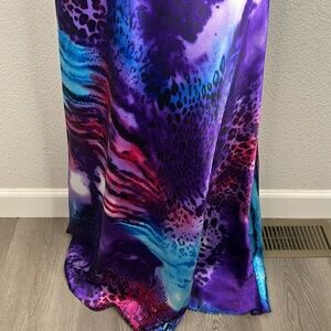 90's Y2K Purple & Turquoise Animal Print Leopard Silky Satin Maxi Dress Size L