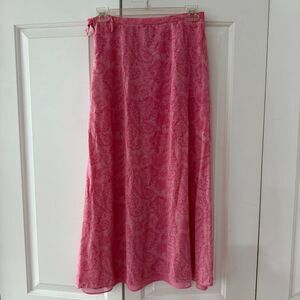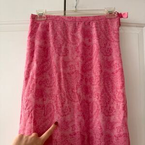 90s Y2K Talbots Pure Silk Pink Paisley A-Line Midi Skirt