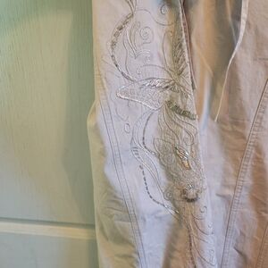 90s Y2K Together Off White Embellished Cargo Style Straight Leg Pants