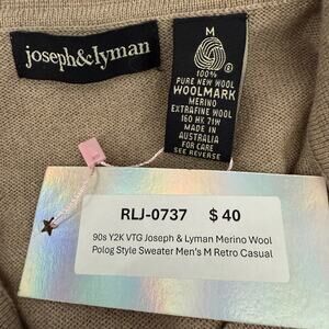 90s Y2K VTG Joseph & Lyman Merino Wool Polo g Style Sweater Men’s M Retro Casual