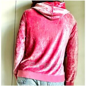 Y2K BCBG Velour/VELVET Hoodie Pink Size XL McBling Rhinestone Logo Trending