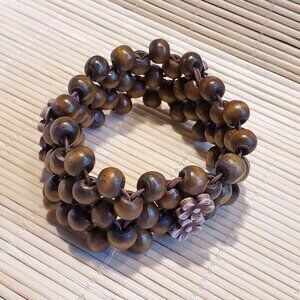 90s Y2K Vintage Boho Brown Wood Mauve Acrylic Flower Beads Stretch Bracelet