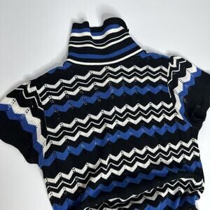 90s Y2K Vintage Mock Neck Turtleneck Tunic Top Small Blue Black Striped Retro