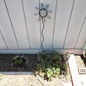 90's Y2K Wrought iron & Green Glass Sun Burst Metal Stake Celestial Boho Hi