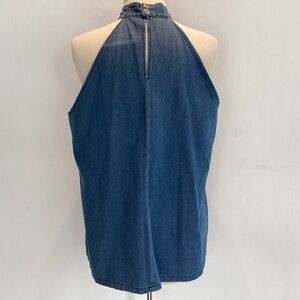 90’s, Y2K halter neck with tie denim cotton blend sleeveless top. Size XXL