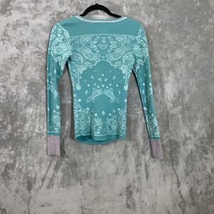 90s Y2K style Fitted Thermal waffle top women's XS Teal Paisley alternative Vampire Diaries top.