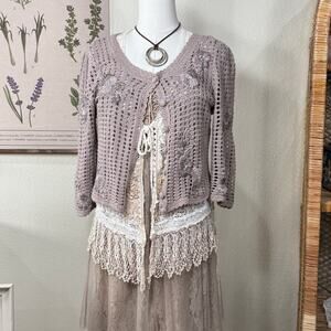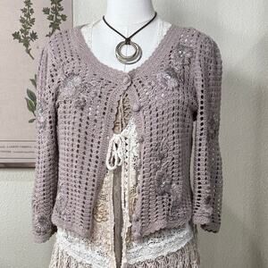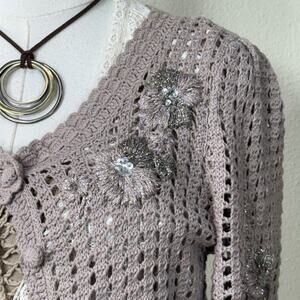 90s Y2k Embroidered Floral Cardigan Sweater Mori Kei Forest Fairy Coquette M