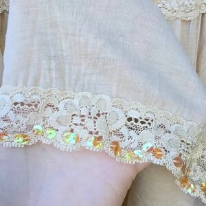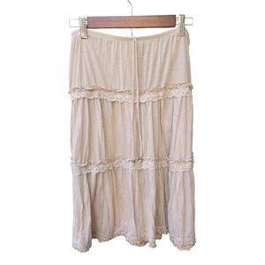 90s Y2k FANG Tan Tiered Lace Ruffled Sequined Boho Skirt