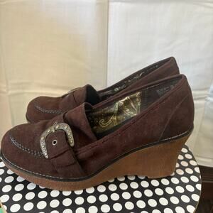 90s Y2k Lower East Side Brown Faux Suede Casual Wedge Heel Buckle Loafer 11 W