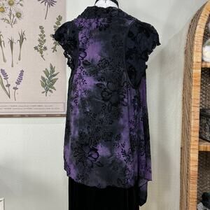 90s Y2k Purple Black Velvet Floral Flowy Open Vest Whimsigoth Romantic Goth L XL