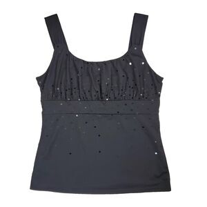 90s Y2k Sequin Beaded Mesh Babydoll Top Black Whimsigoth Fairy Grunge L