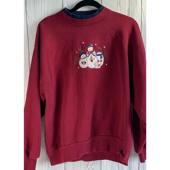 90s Y2k Snowman Puppy Sweatshirt Cottagecore Blue Pullover Grannycore Sz L