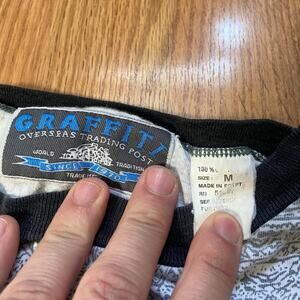 90s AOP all over print aztec tribal tee shirt. light stain. white and grey. graffiti brand.
