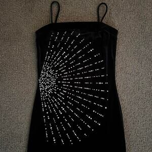 90s black velvet sparkly square neck maxi gown