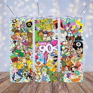 90s cartoons skinny tumbler drinking cup 20 Oz. with ice topper.