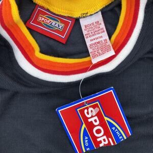 stripe detail on collar sleeve and around arm logo patch on bottom left
