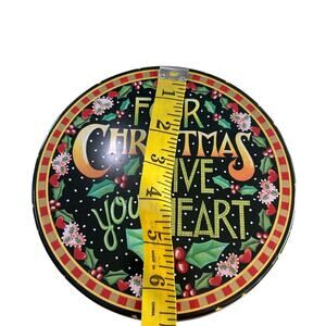 90s decorative Christmas tin- cottage core style- rustic- hearts holly- holiday