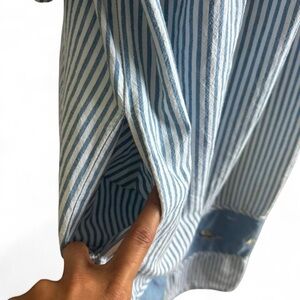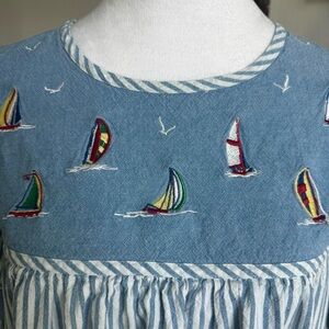 Preloved in great condition. 90s medium sailboat moo moo kaftan summer dress blue white stripe boat house dress embroidered bird long vacation holiday boho cottage core