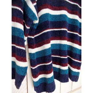 90s striped chunky chenille slouchy pullover sweater/vintage blanket sweater